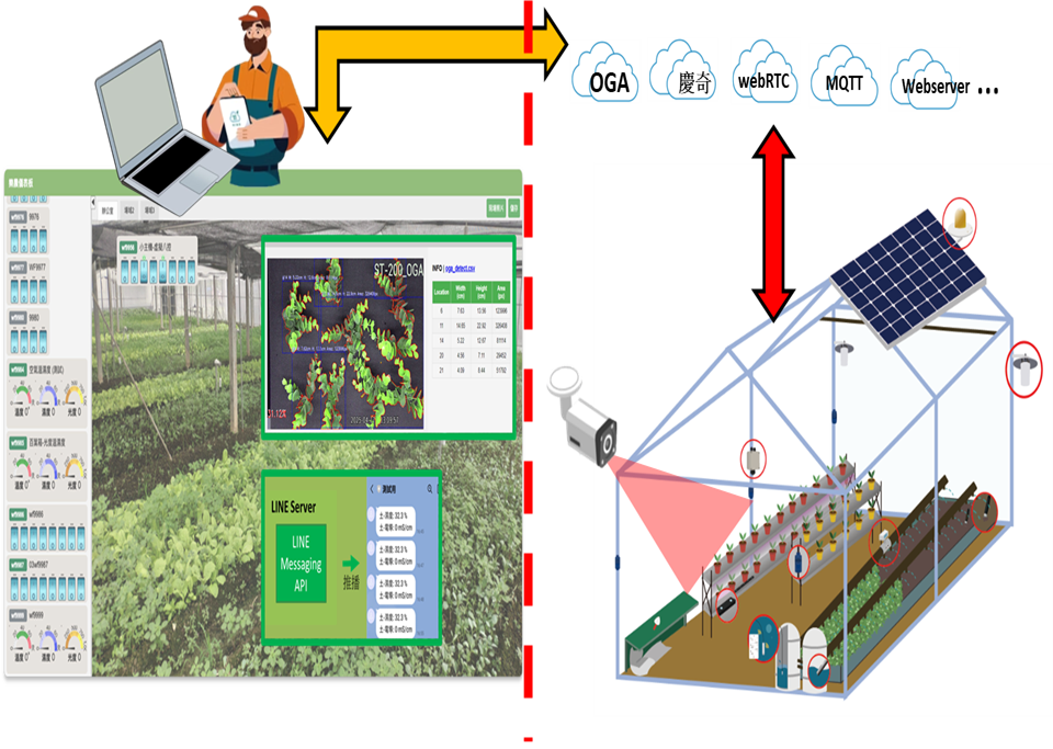 系統架構(摘要):OGA IPC:串流、抓拍、Google 上傳、FTP 上傳、綠面積計算、LINE 推播。